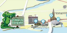 Our Everglades Tour Sightseeing Map makes planning easy—see how long it takes to drive from Downtown Miami to the Everglades and which landmarks you’ll pass along the way. Learn how to spot the difference between an alligator and a crocodile while preparing for an unforgettable airboat ride through America’s most unique subtropical wilderness.